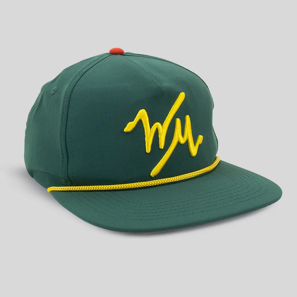 Up front, an oversized WM logo and matching rope—this lid also features interior mesh support to help the hat keep its intended shape.